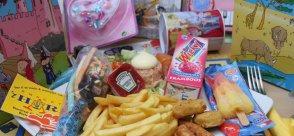 Patatje voor de kids, 4 nuggets of vingers, drankje, ijsje, snoepje en speeltje. Wat wil een kind nog meer!